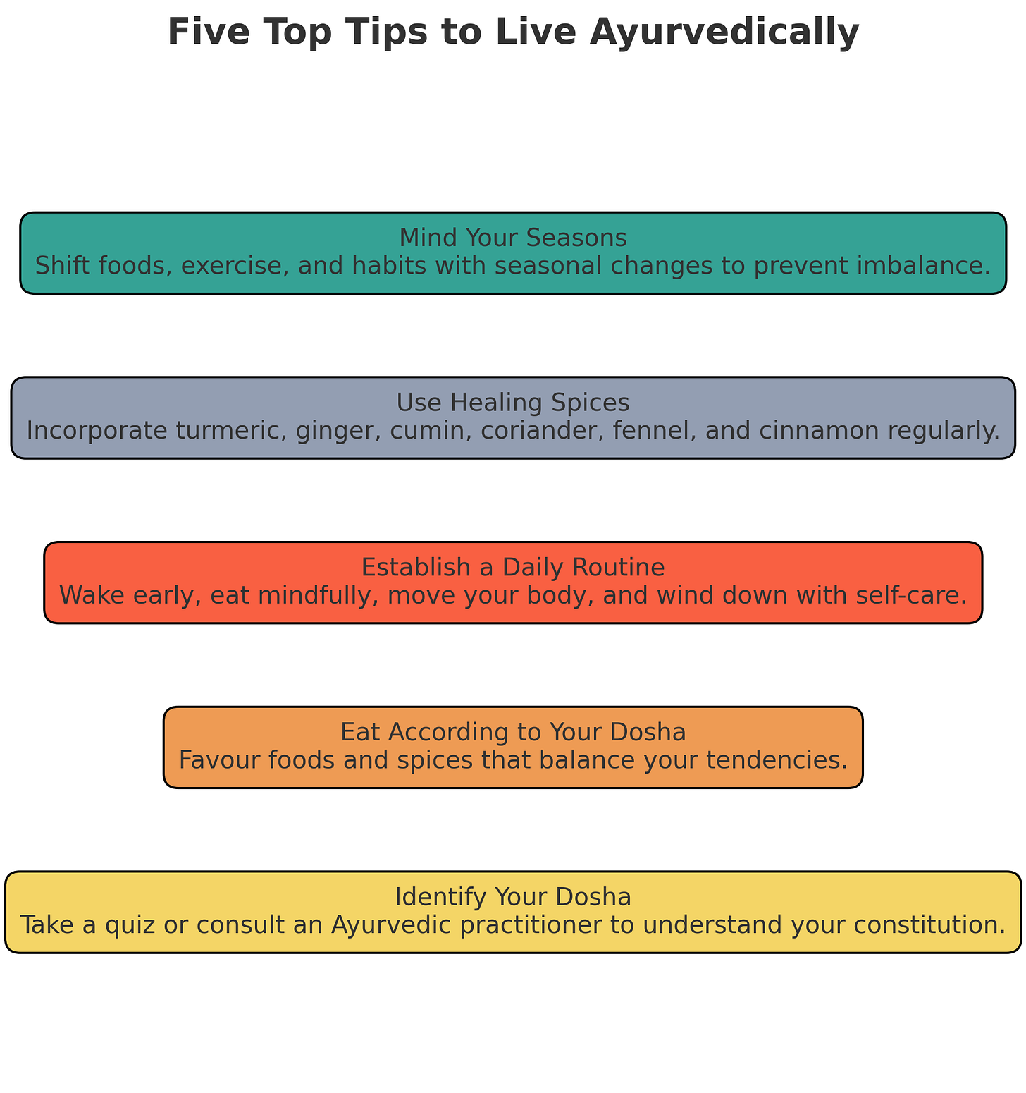 Ayurvedic living integrates daily routines, diet, and mindfulness: