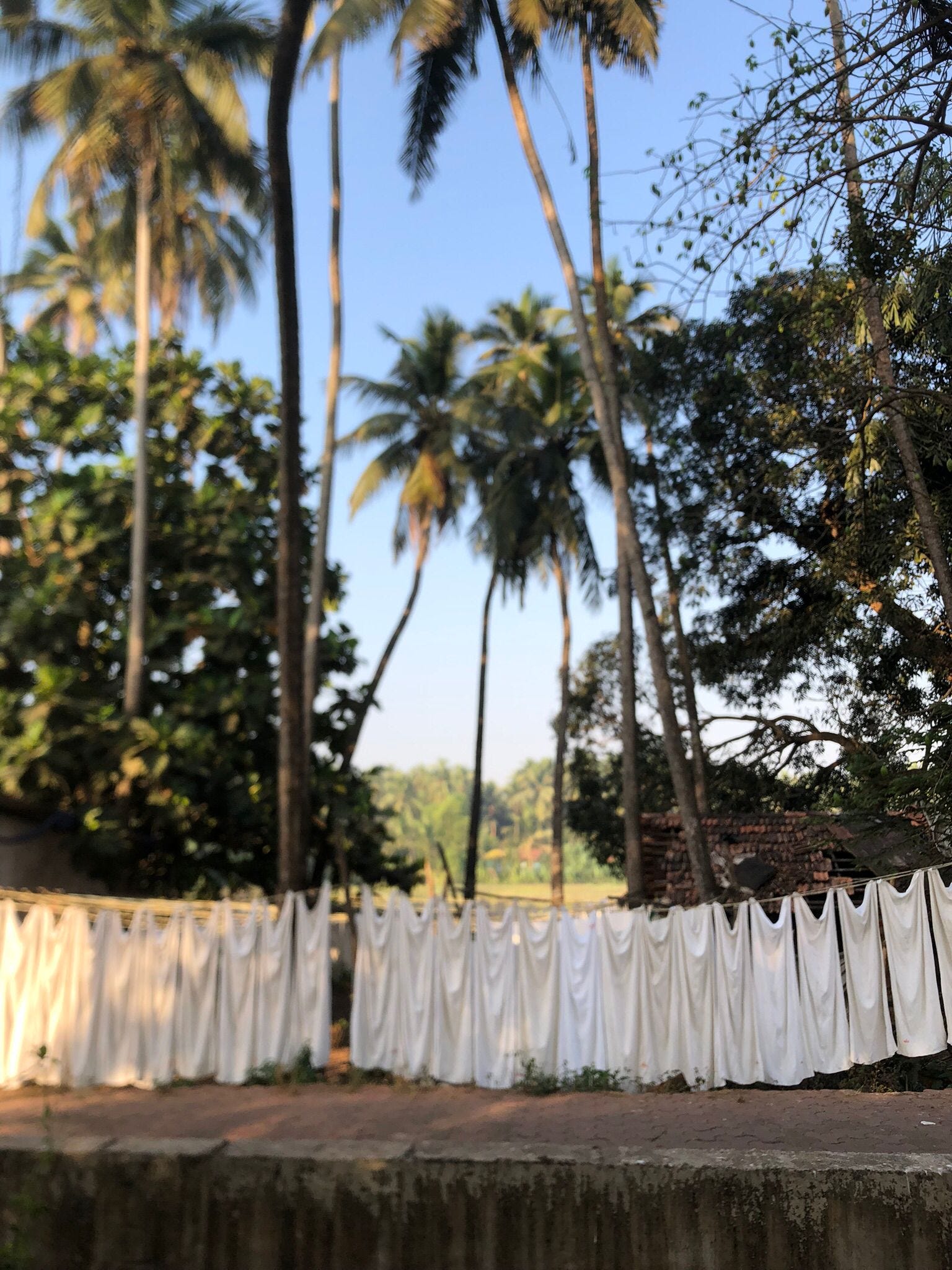 Drying the laundry under coconut trees, Saligoa